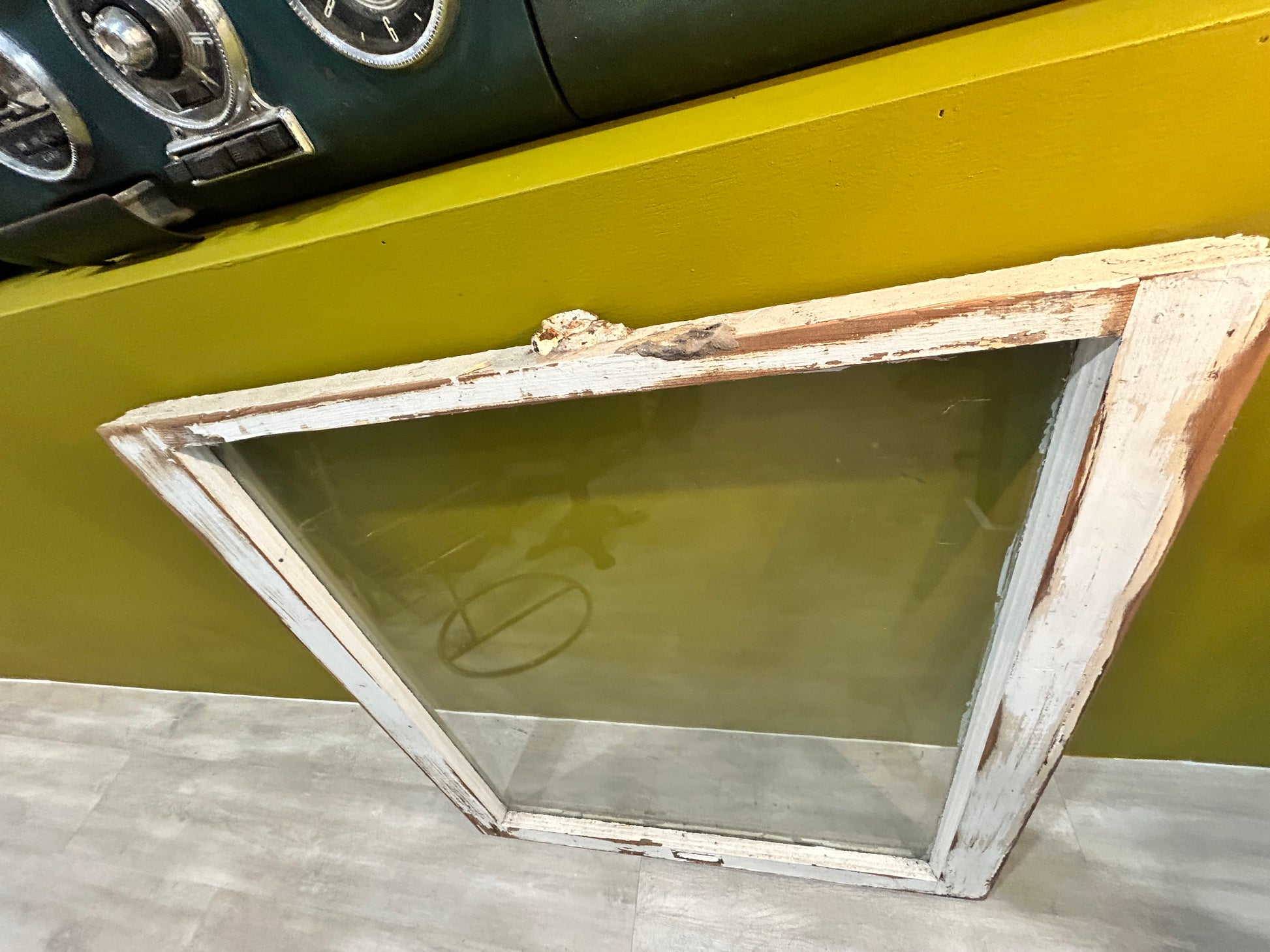 Beautiful wear on this old wood. Great condition with original handle and lock clasp on top. Hangers added for ease, or lean it up against a wall for added dimension. Use for a project, hang on top of a family portrait for a unique display that people will envy the second they see.