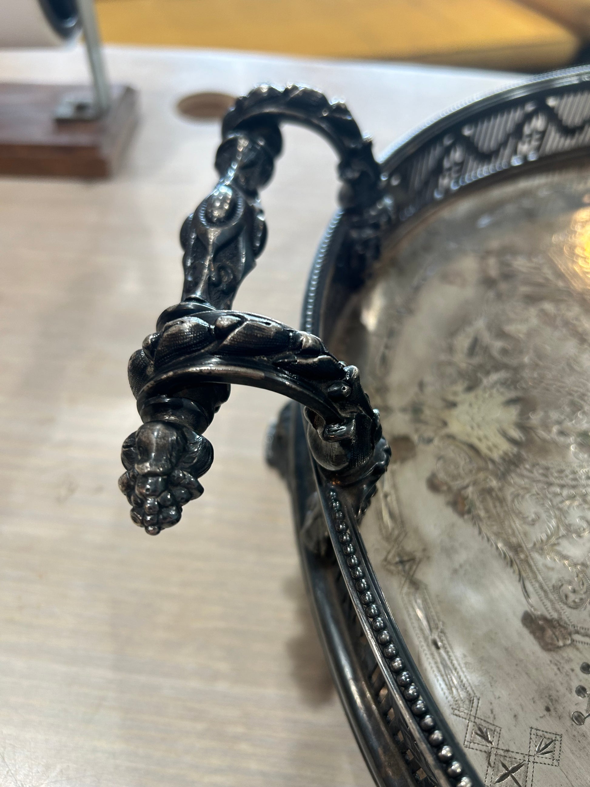 Martin Hall Victorian Footed Silver Plated Tray with Gallery and Handles