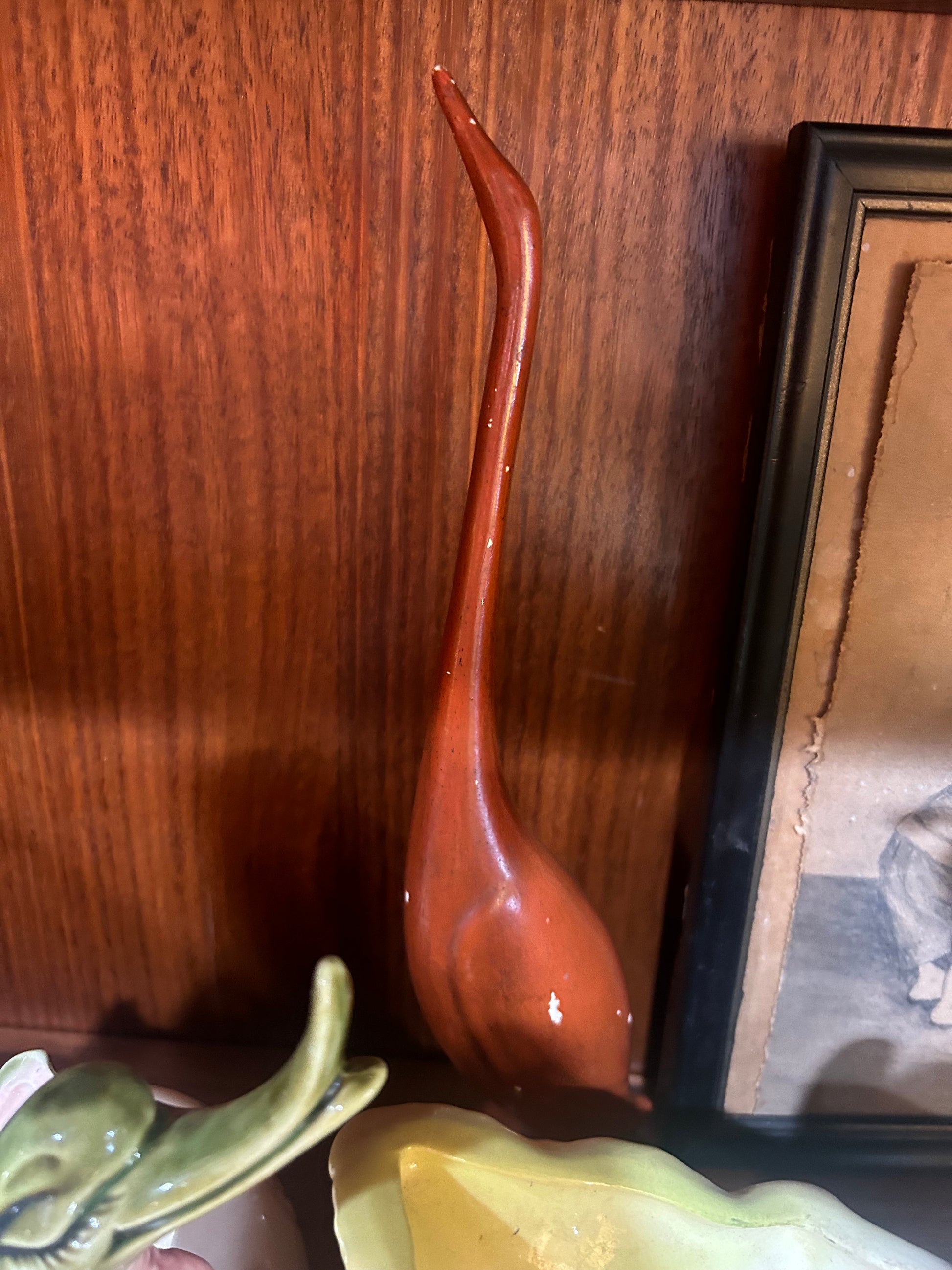This piece of art is small, but beautiful. It has a natural paint patina from being around for years. Add a little dash of height to your bookshelf or on a counter.