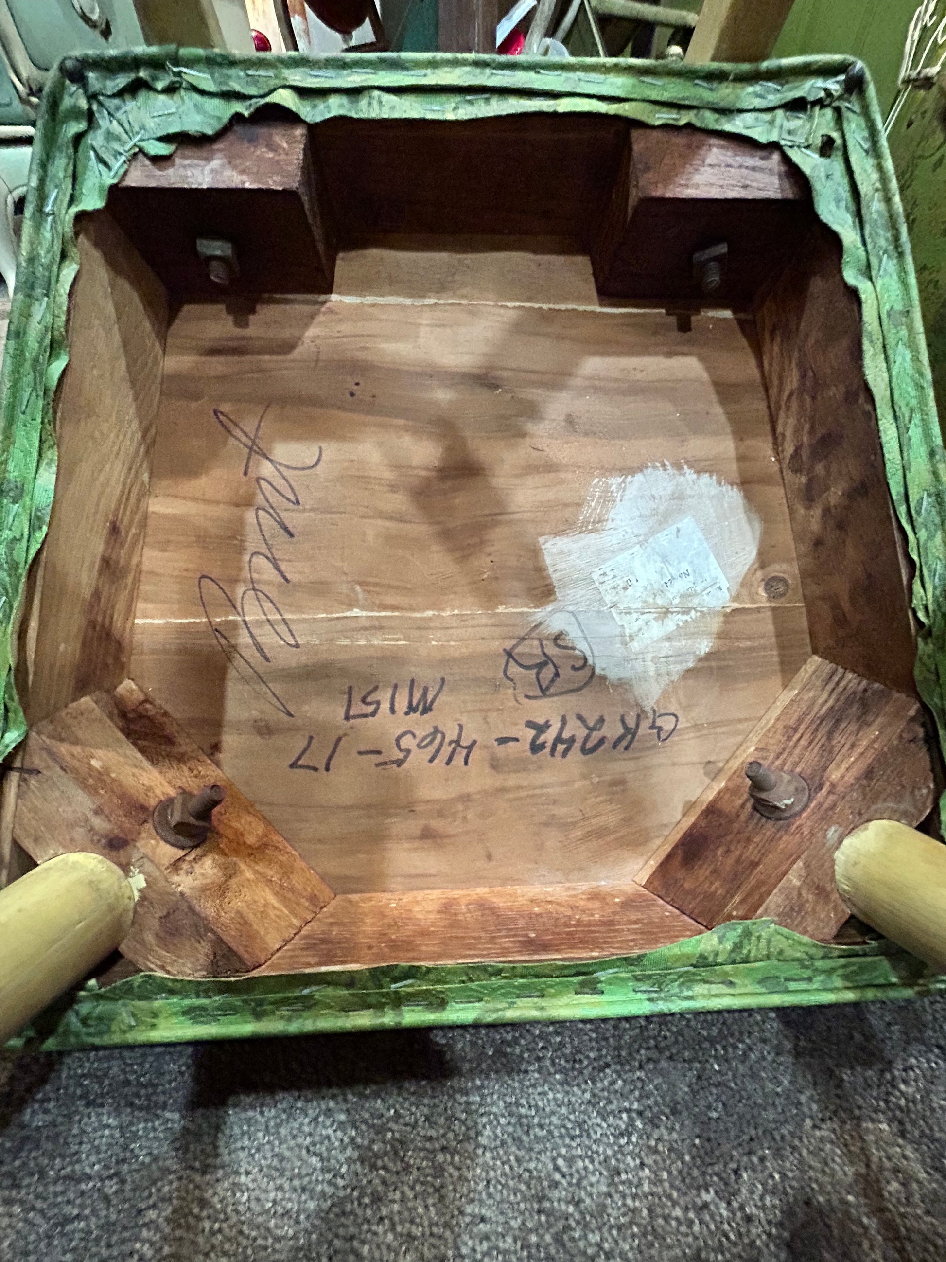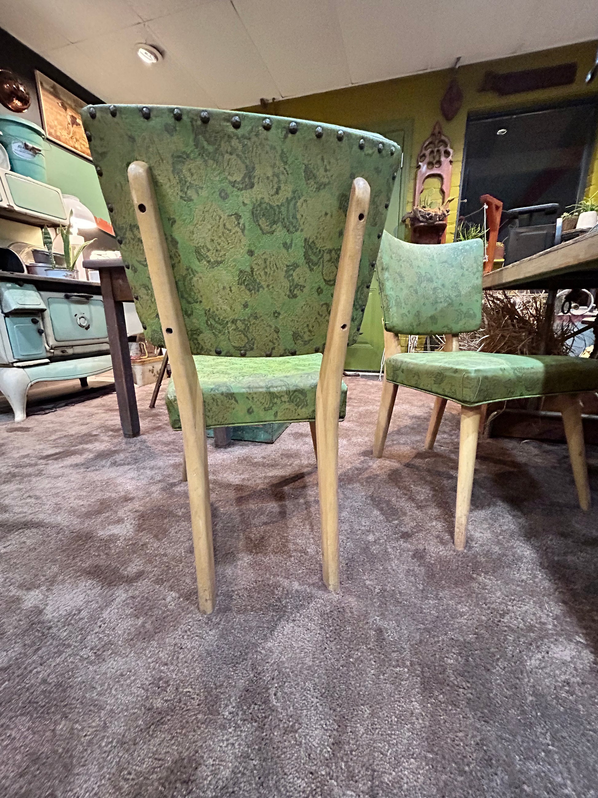 Mid Century Green Floral Print Vinyl Chairs- Meier Pohlmann Set of 2