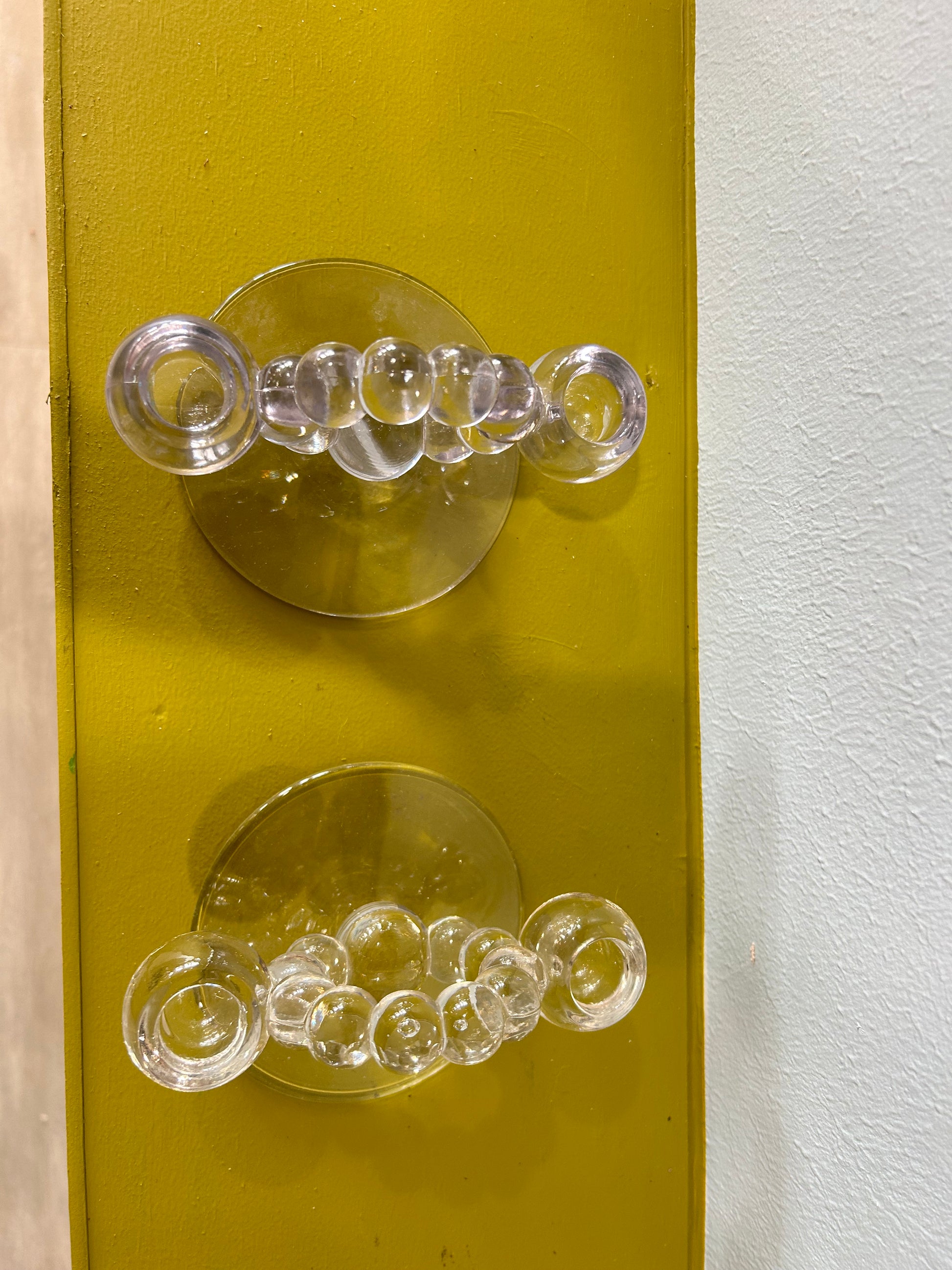 This circle theme is so satisfying. One light clear and one rare lilac tinted glass. These MCM would be amazing wedding gifts or a unique birthday gift for the woman in your life that has close to everything, I bet she doesn’t have these.