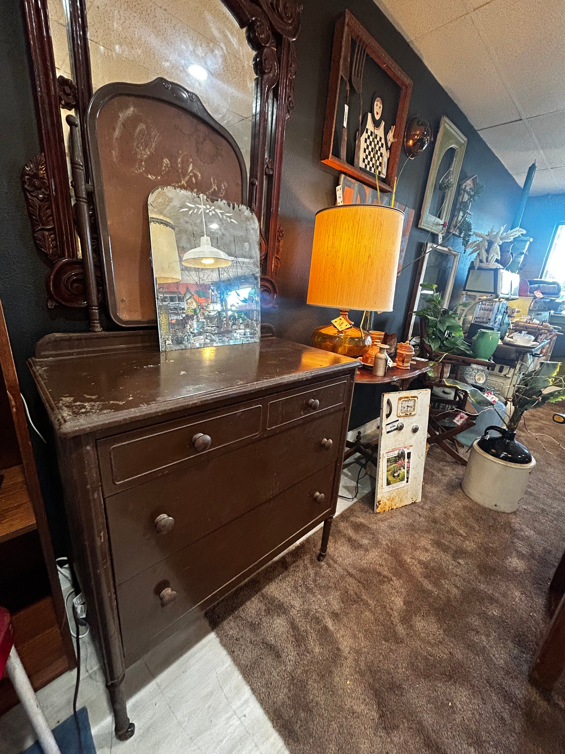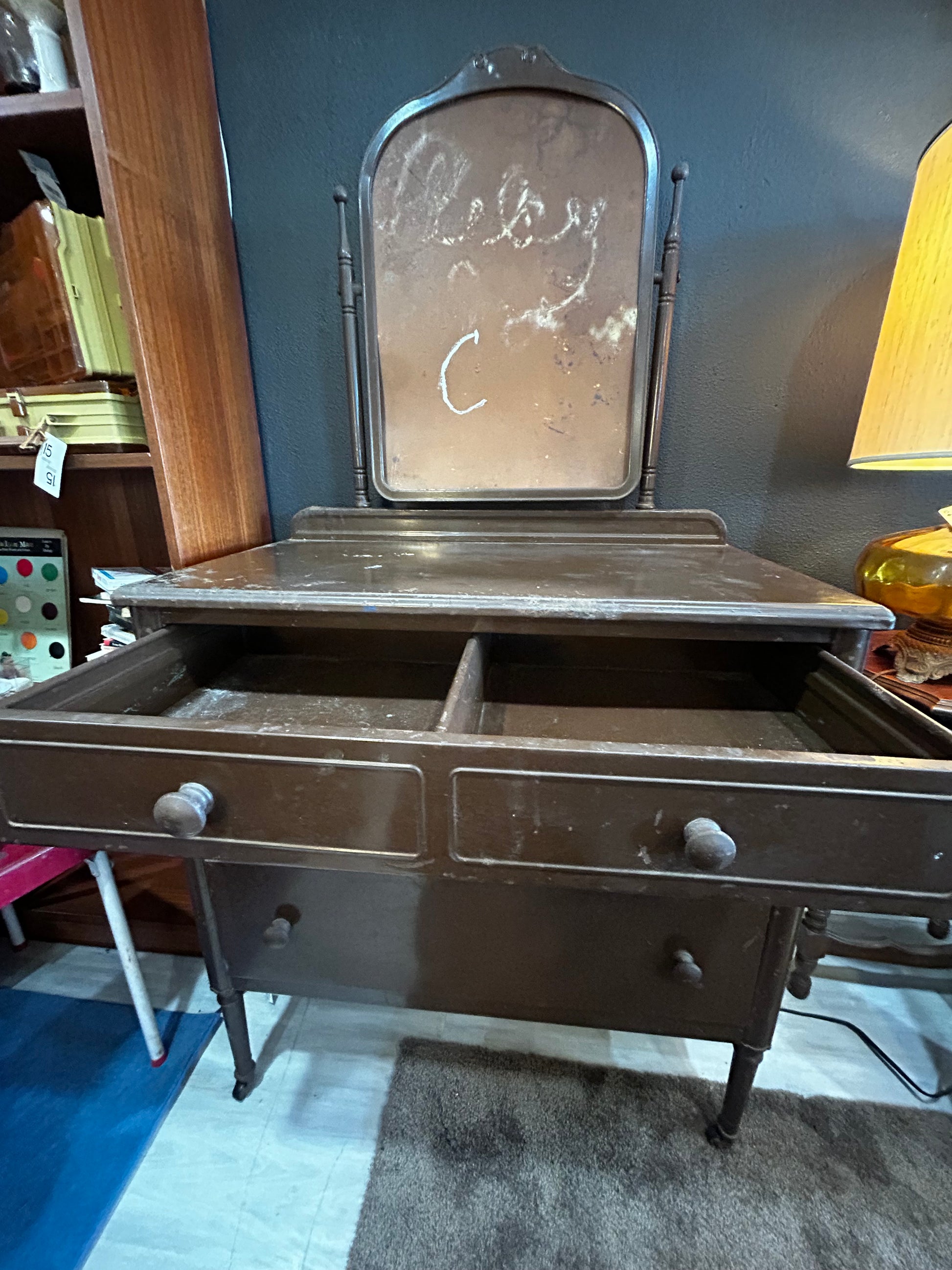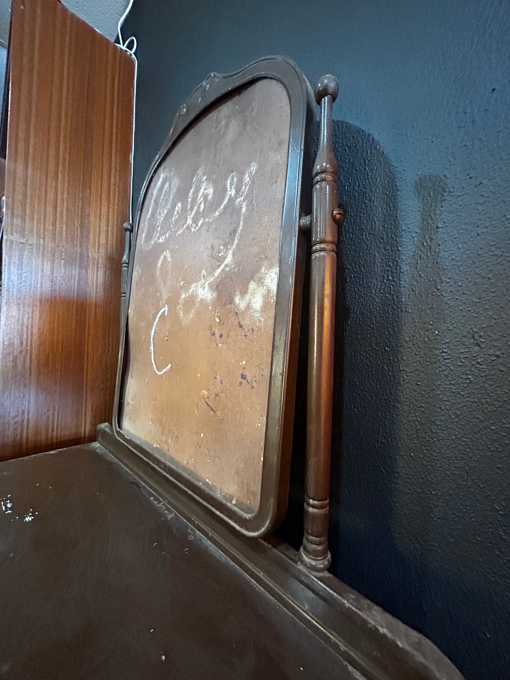 The original mirror is sadly missing on this AMAZING piece. But thats in your favor because the hefty price tag goes down quite a bit just for being a Blue Goose Special.. but also because she’s in need of some love. But oh so worth it.