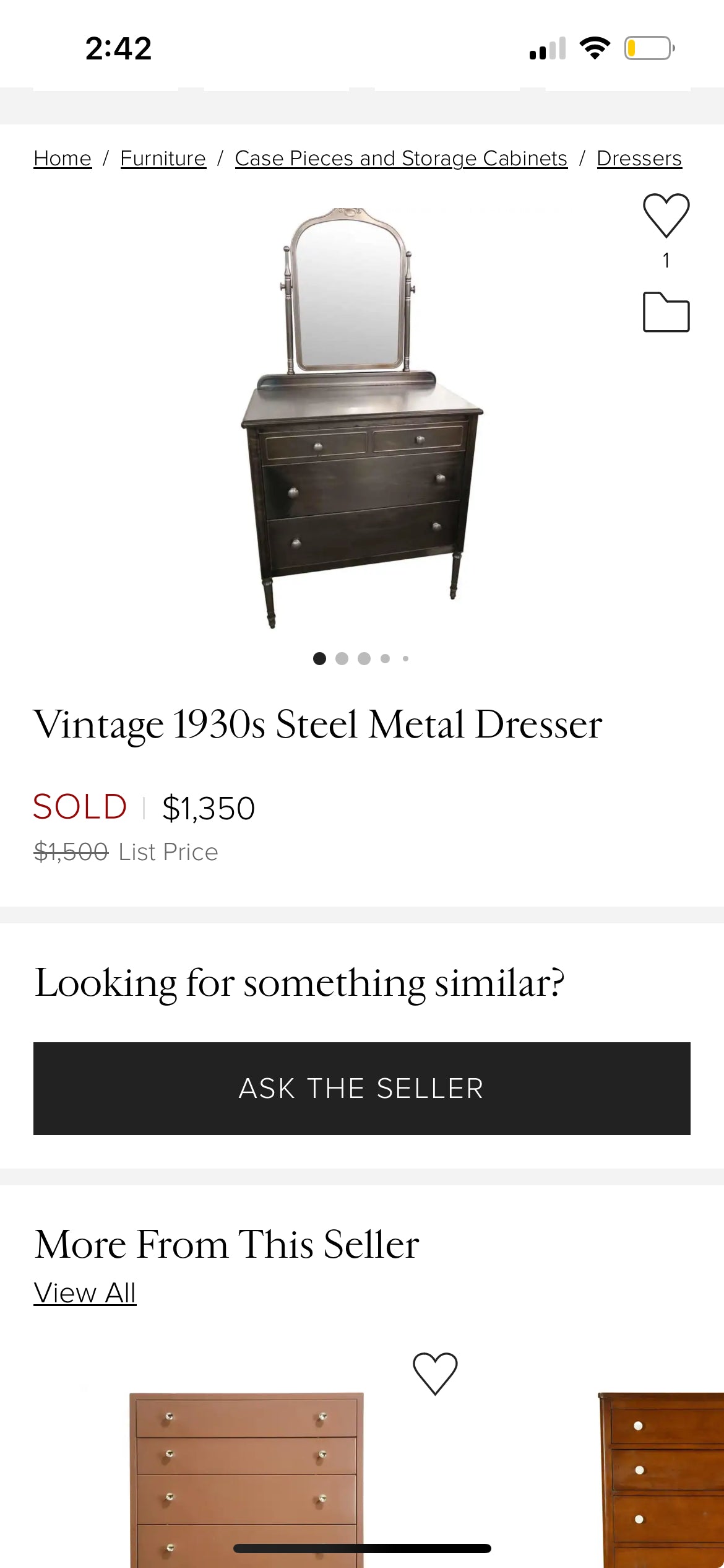 RARE Antique 1920’s Metal Dresser- No Mirror