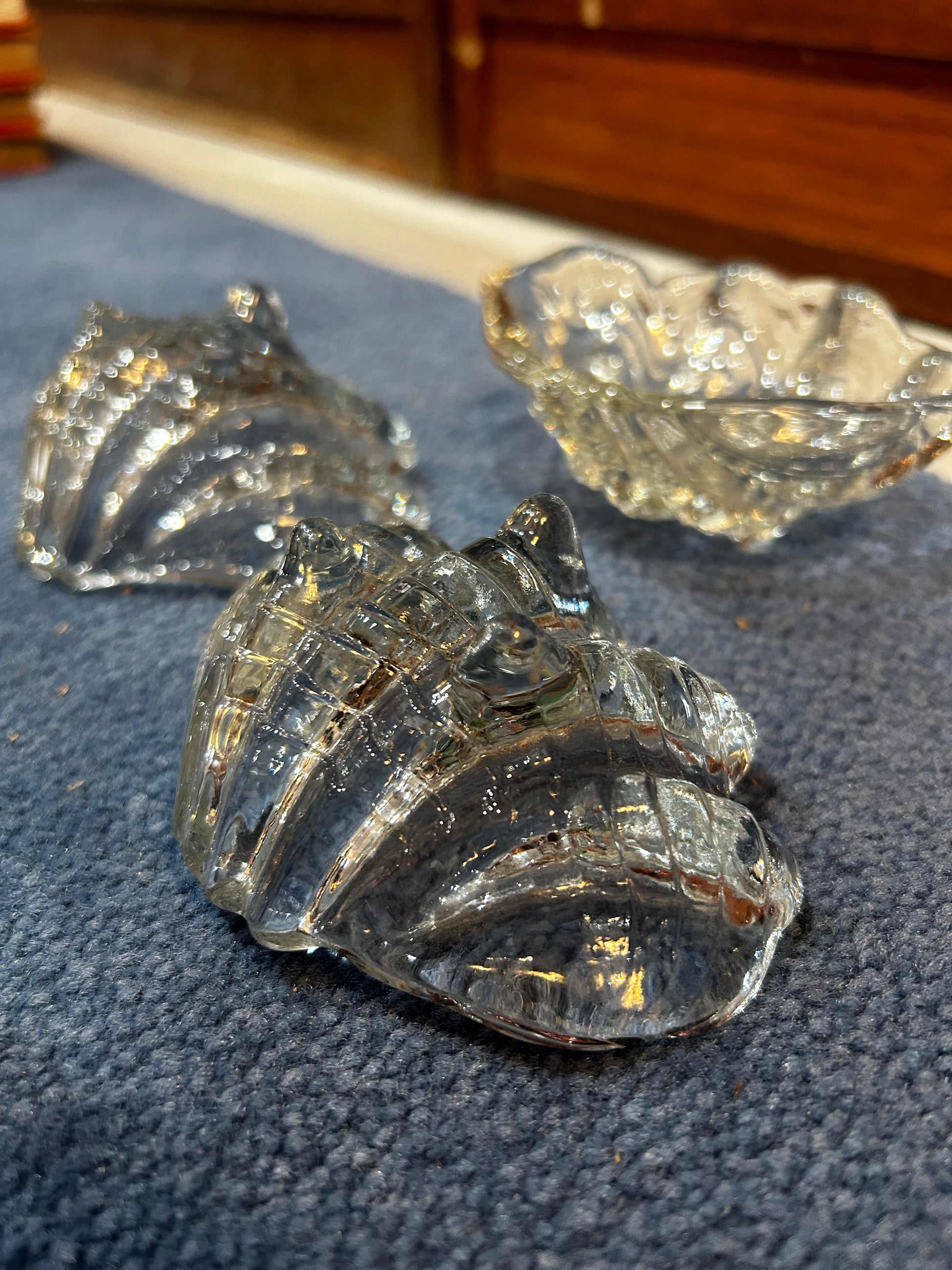 Set of 3 Glass Sea Shell Shaped Dishes- Footed