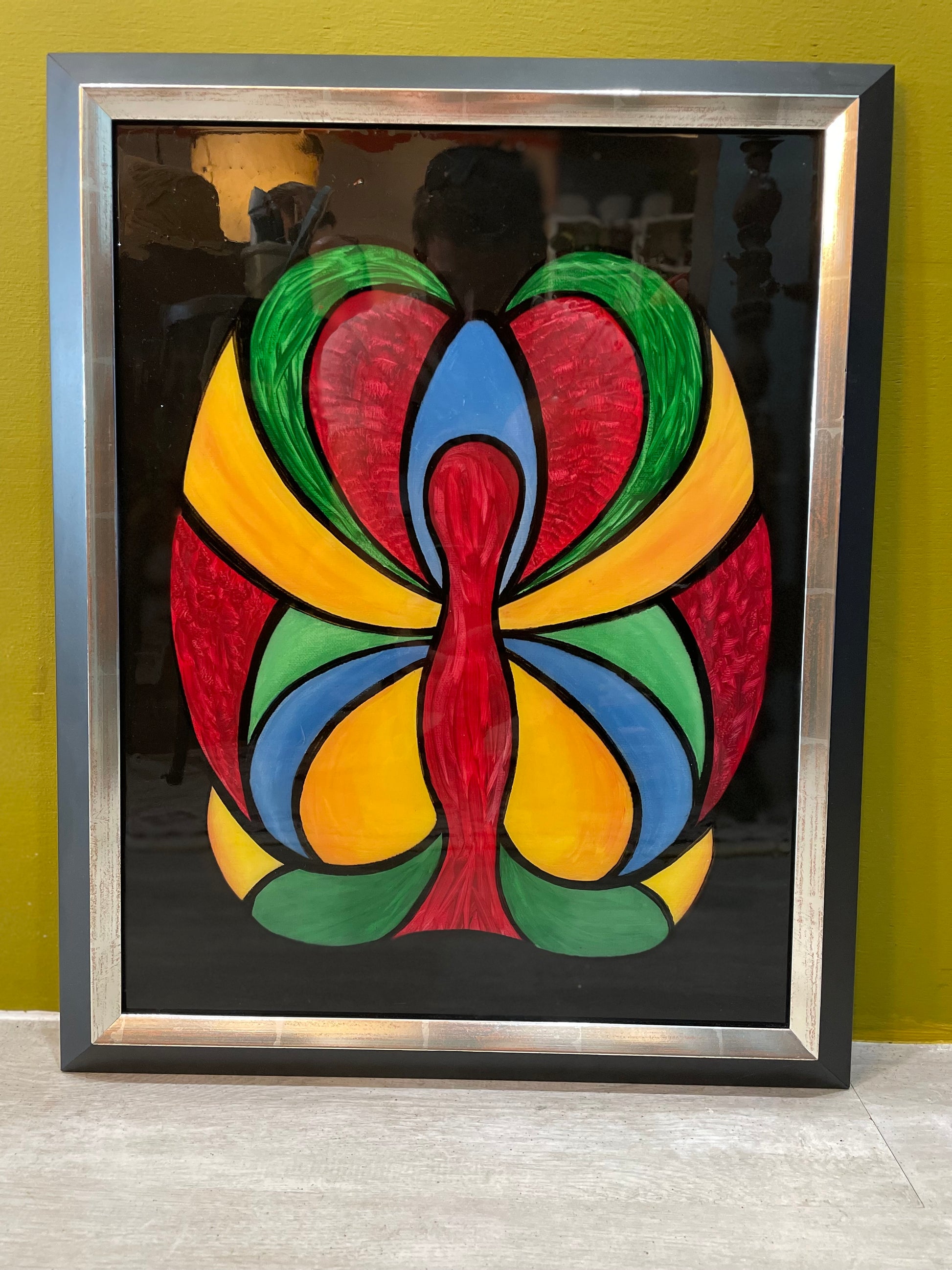 Set of 2 Abstract Flower And Butterfly on Canvas- Primary Colors- Signed Originals