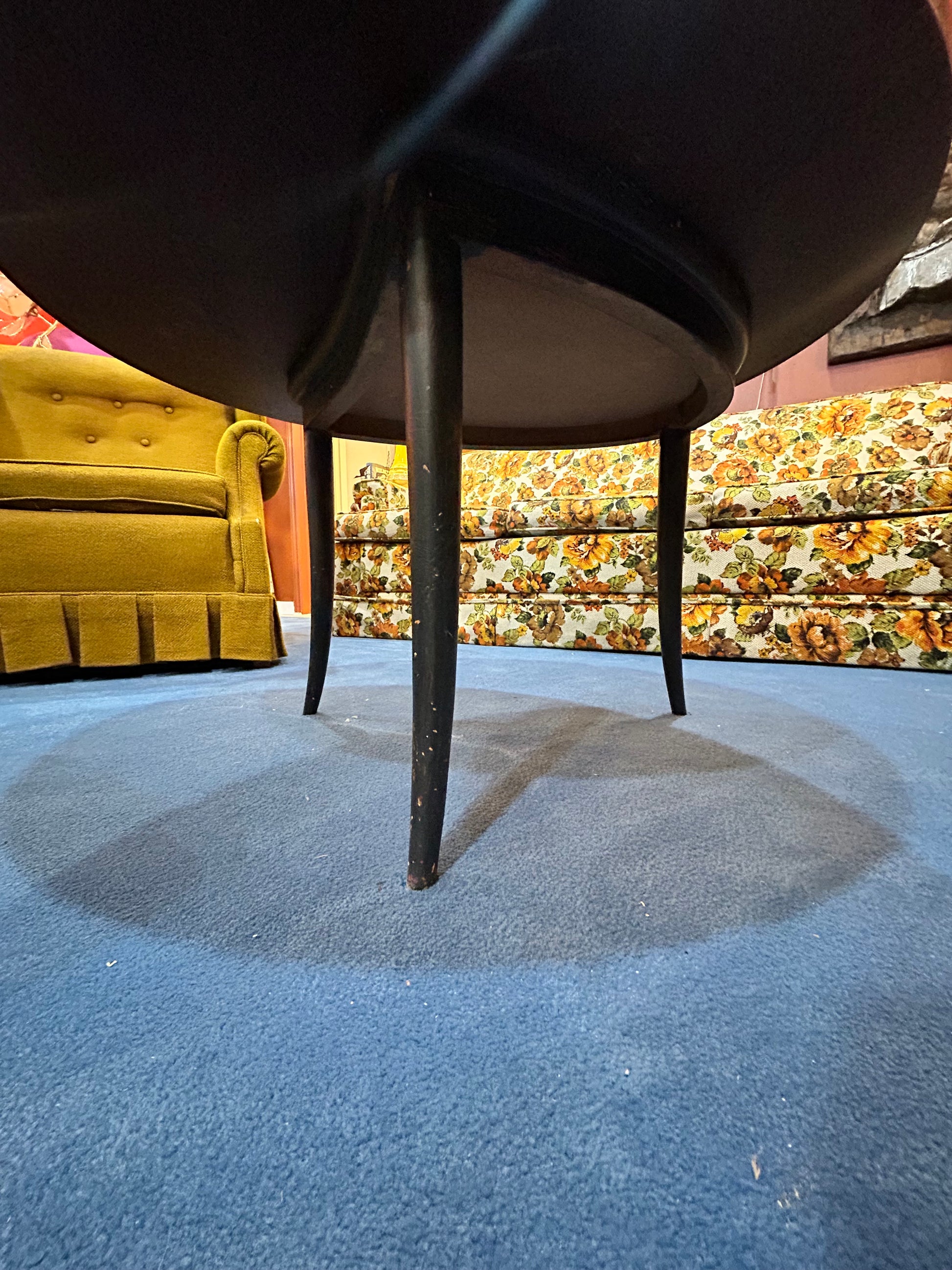 This table was born by accident. I wanted a round coffee table for the living area of the store but was having the hardest time. This 3 legged table in the most unique shape was having a hard time finding a home in the store and a round piece of wood I had in the back was destined to abandoned under my list of projects. BAM- the two of them together gave me exactly what I wanted. The contrast of the dark brown worn and rugged wood top looks as if it was built for the black table. The table alone is gorgeous, semicircle design with flare and the legs are so attractive. Straight and then a hint of flirt at the foot. Use it like I have or come up with your own ideas. Either way you have the recipe for something amazing!