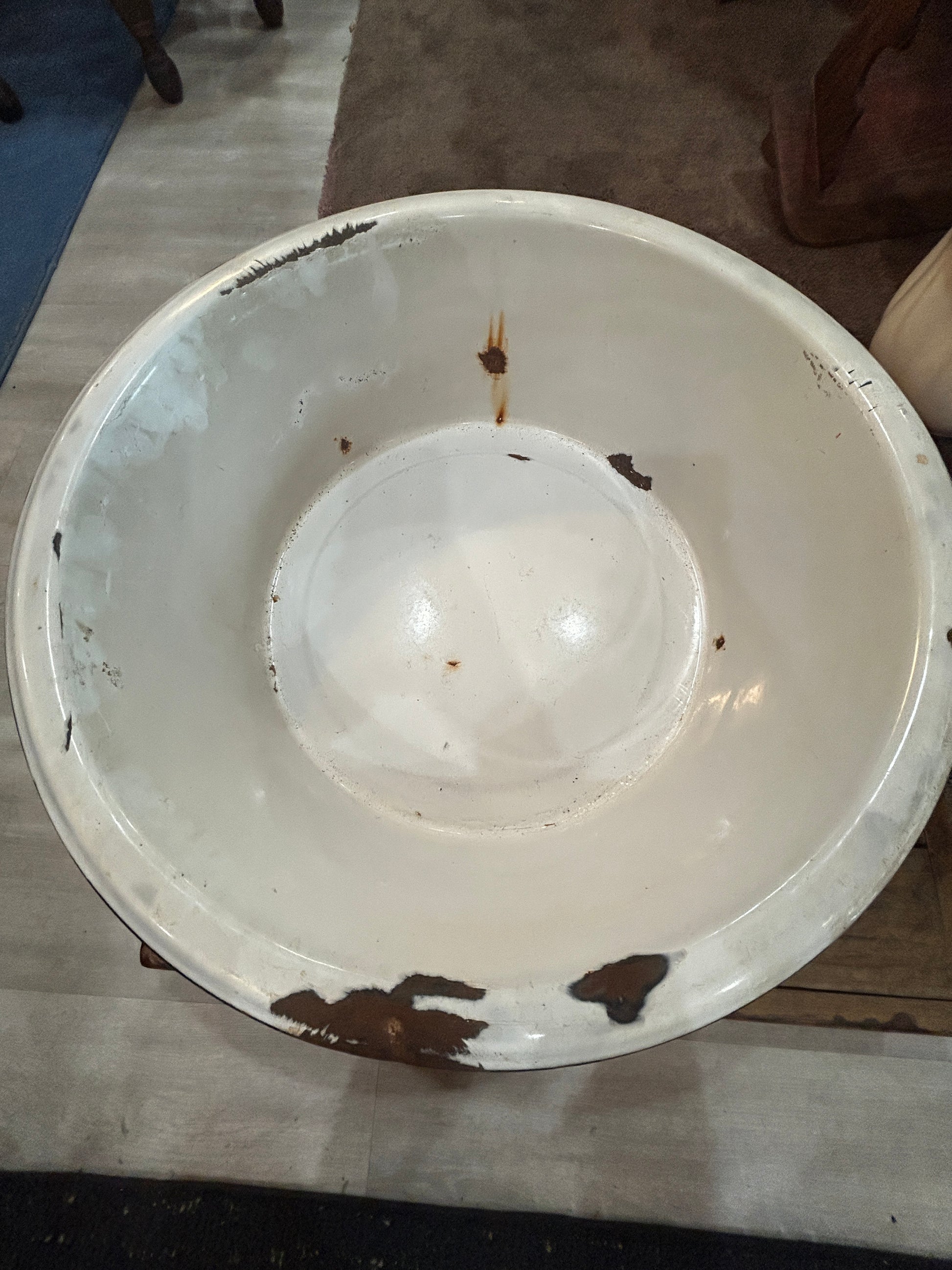 Large Vintage Blue and White Marble Enamel Washtub