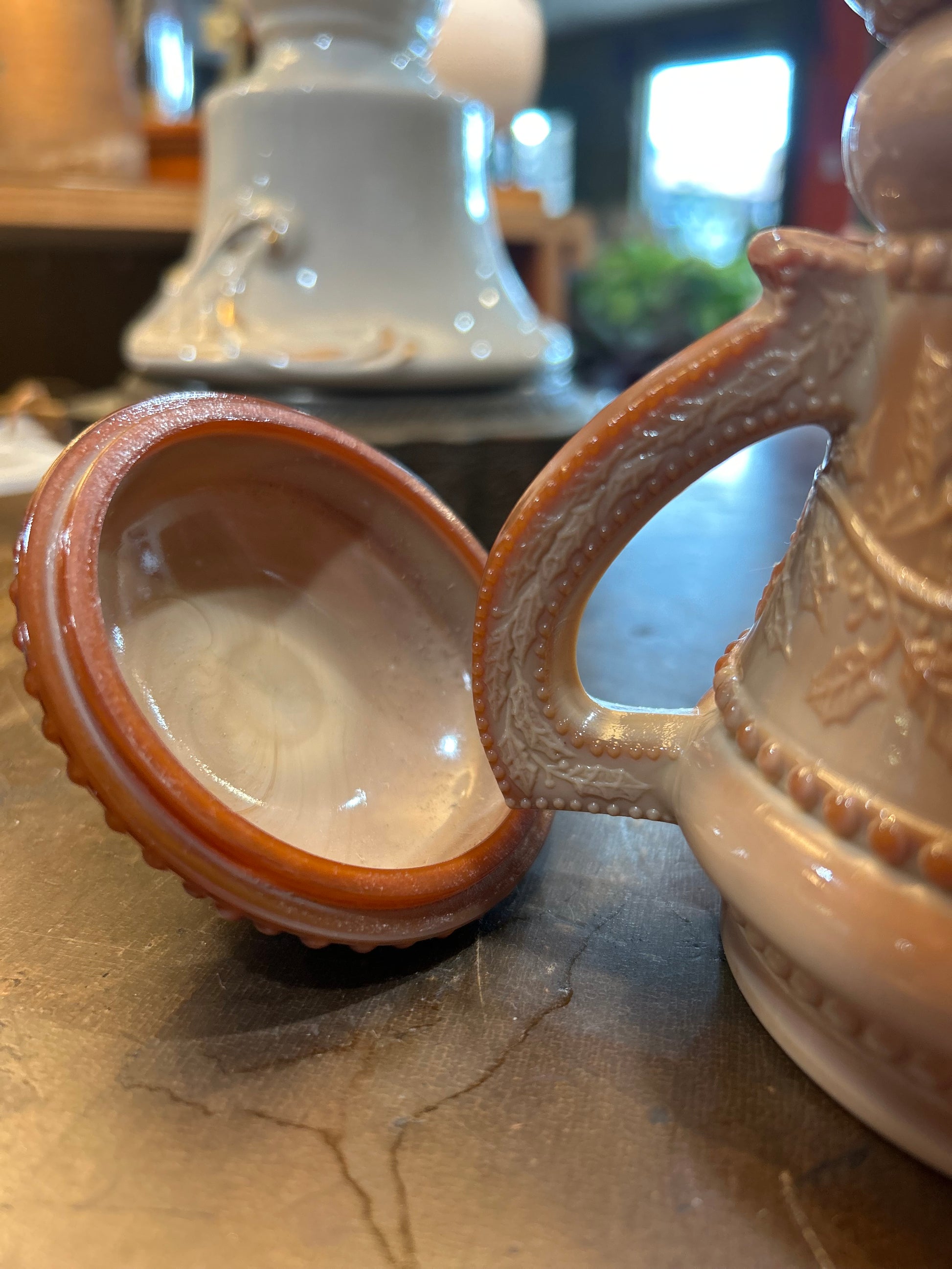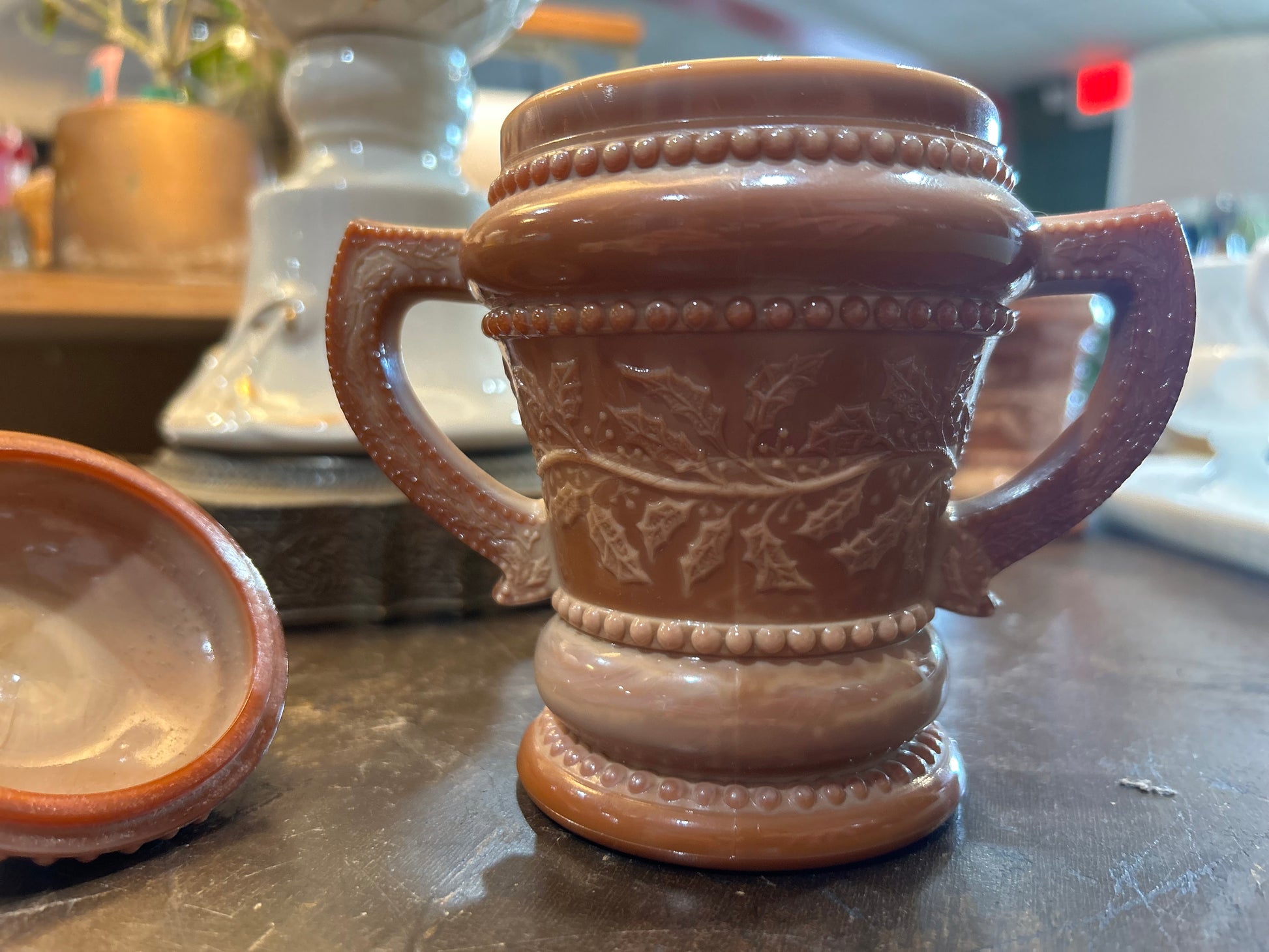 Summit Vintage Chocolate Caramel Slag Glass- Sugar Bowl With Lid- Holly Berry