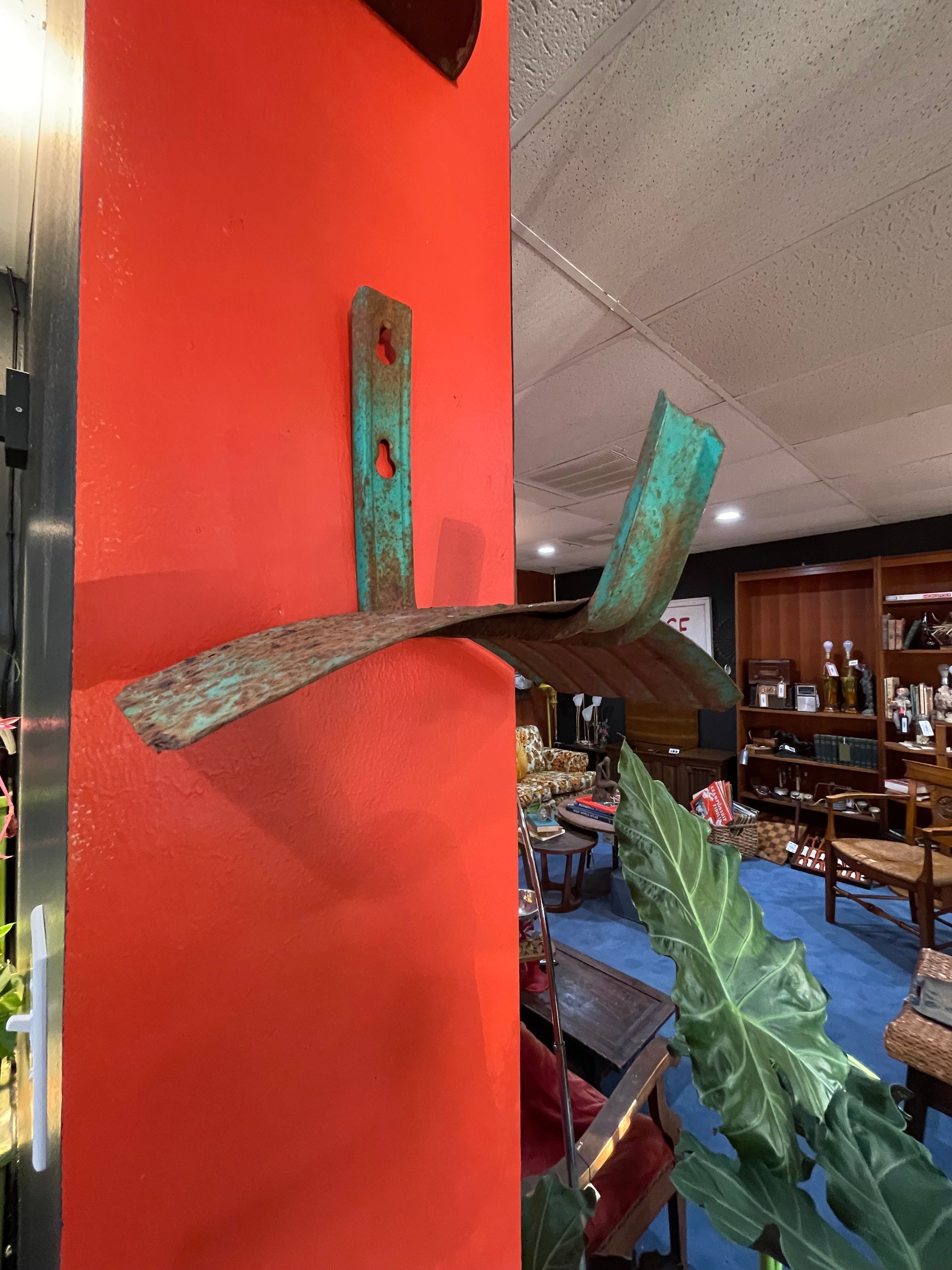 The patina on this makes me not want to cover it with one single thing. It’s gorgeous hanging on a wall alone. But could also stay inside and be used for towels, or by the pool for the same thing. I just know that looking at this would make me dread rolling the hose up much, much less.