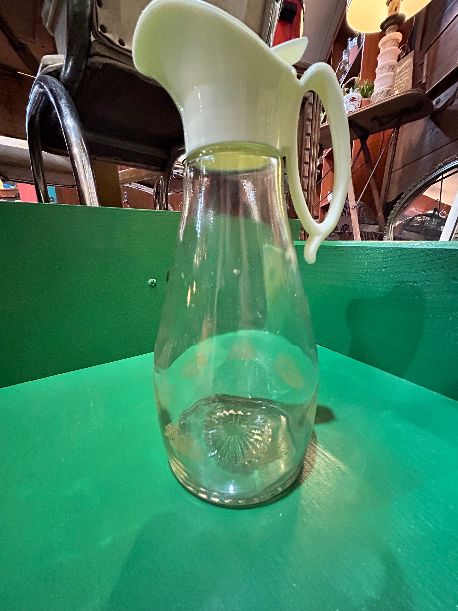 Vintage Log Cabin Glass Syrup Pitcher- Retro Handle