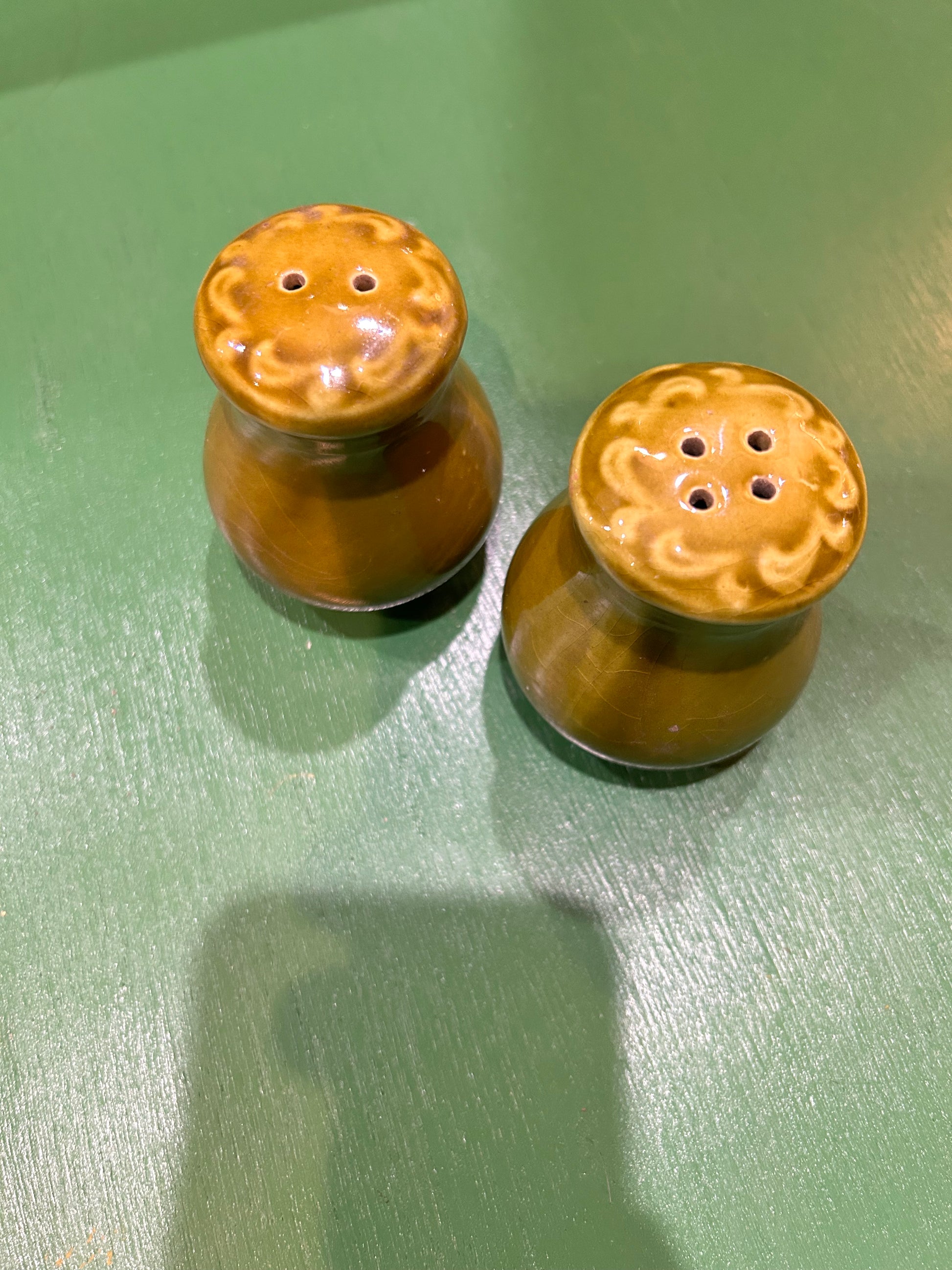 Vintage Lusterware Olive Green Salt and Pepper Shaker Set
