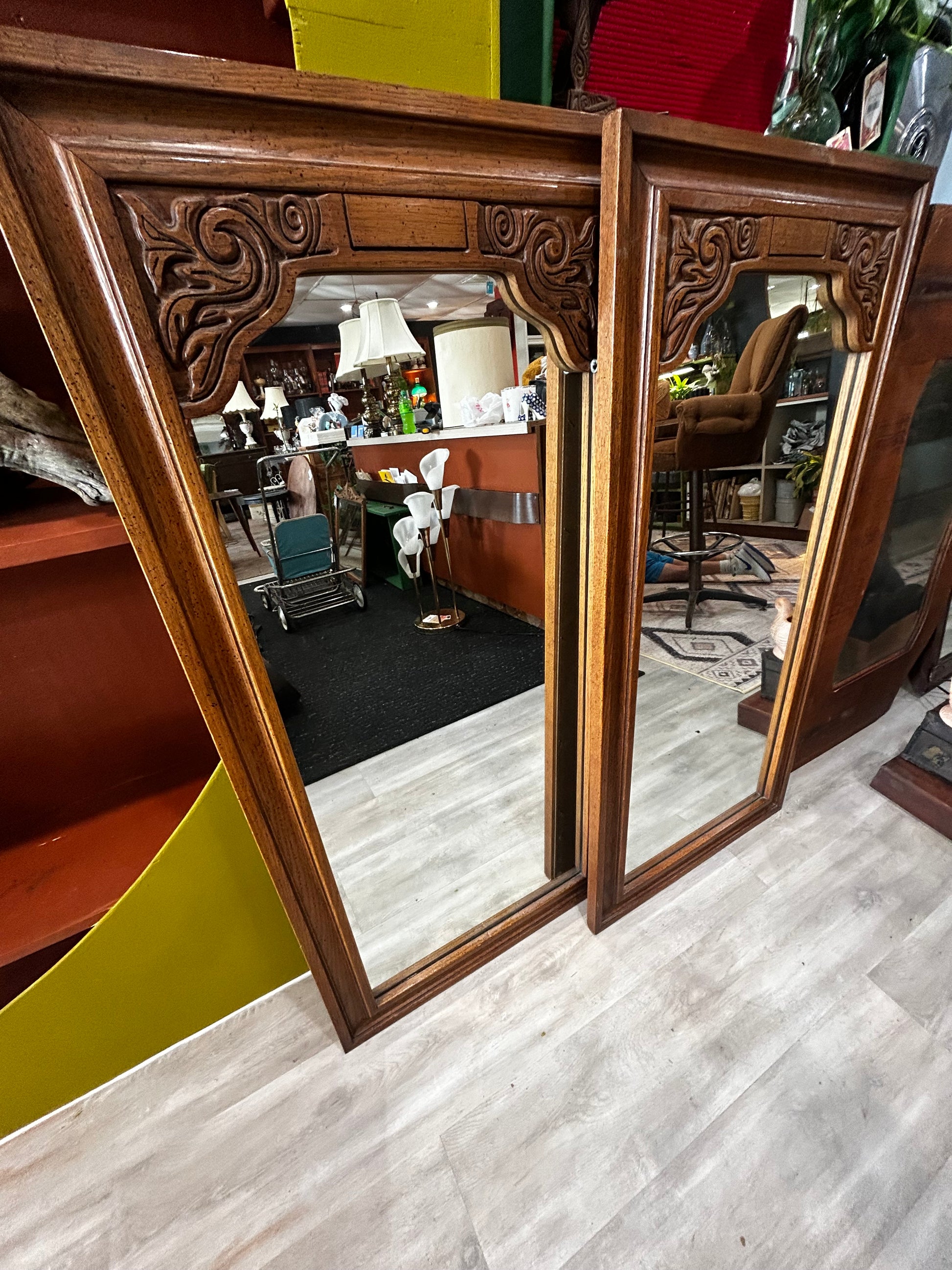 Vintage MCM Wooden Intricate Design Wall Mirror