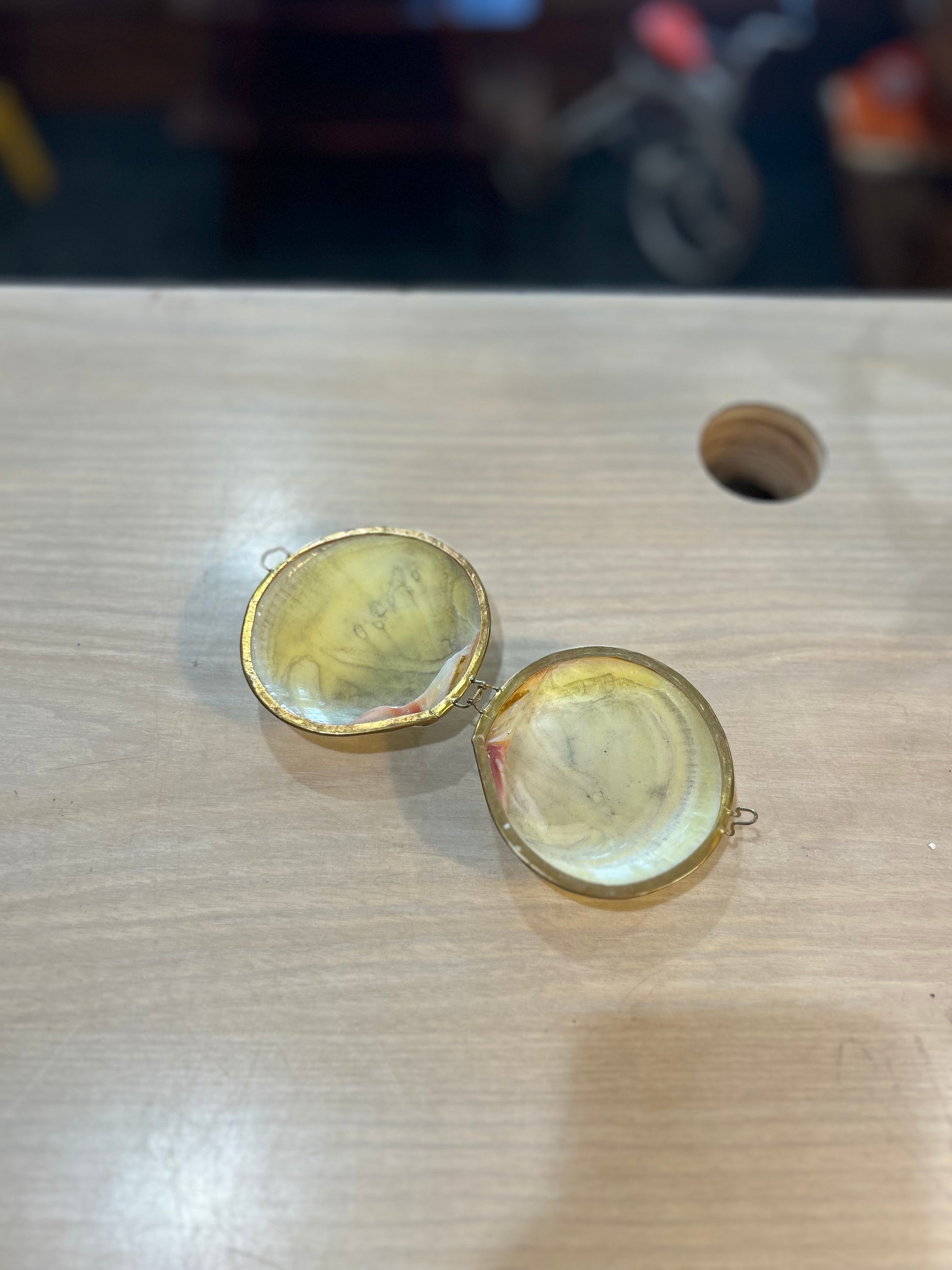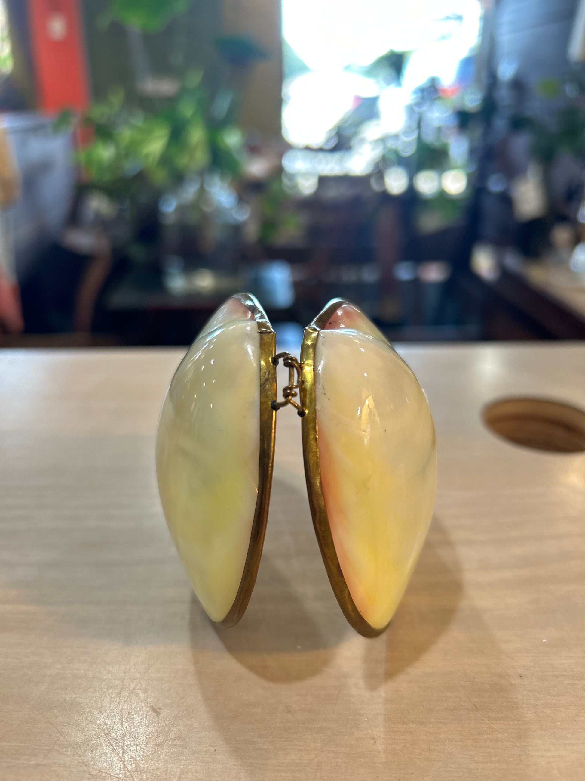 Vintage White Clam Shell- Brass Trim Trinket Box