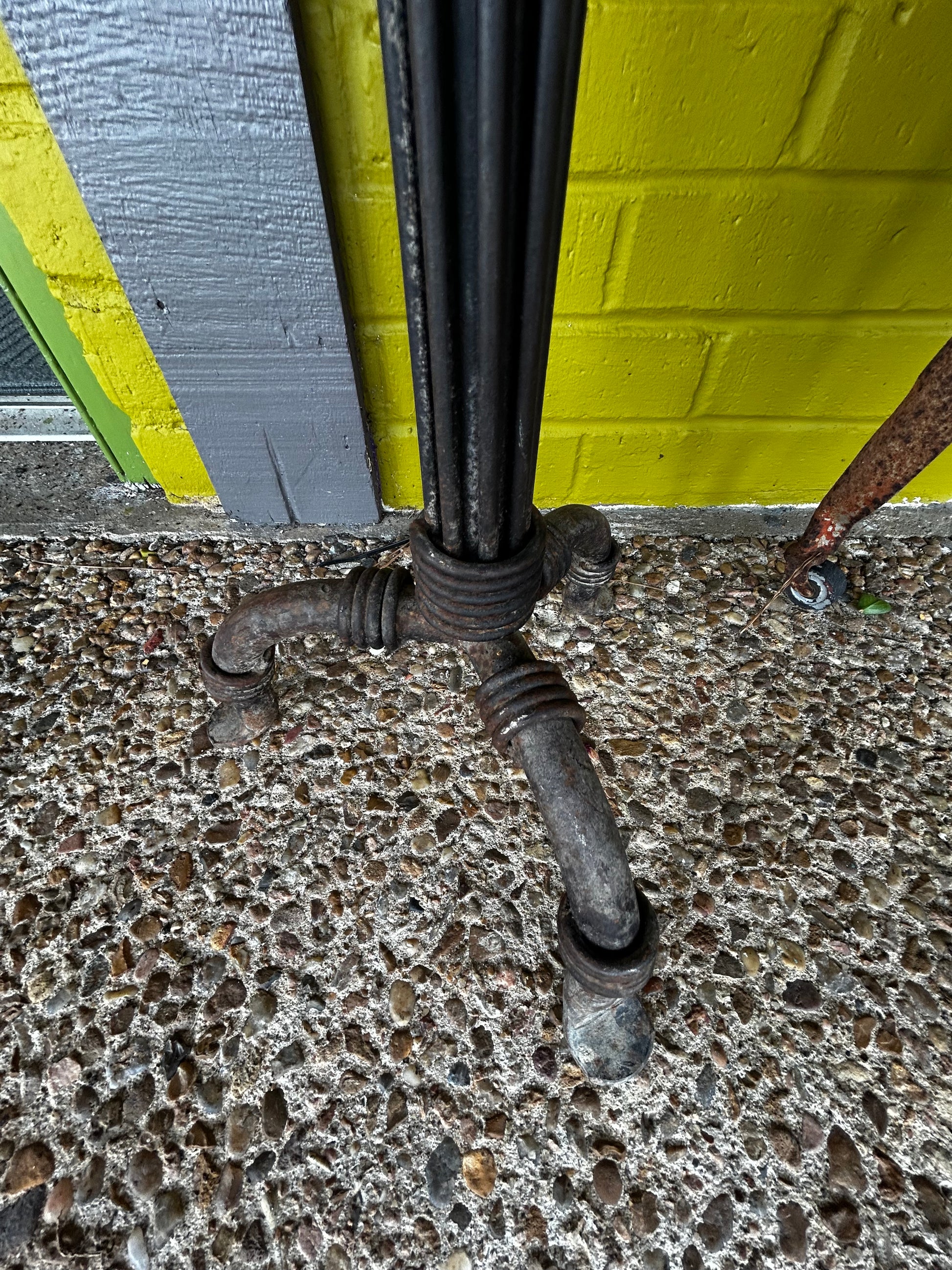 Heavy, industrial candlestick holders. Or, plant holders. Masculine enough to place in a man cave with dark colored candles but ironically feminine enough to place in a garden with a beautiful plant flowing down or beautiful bright big candles. Versatile and gorgeous.